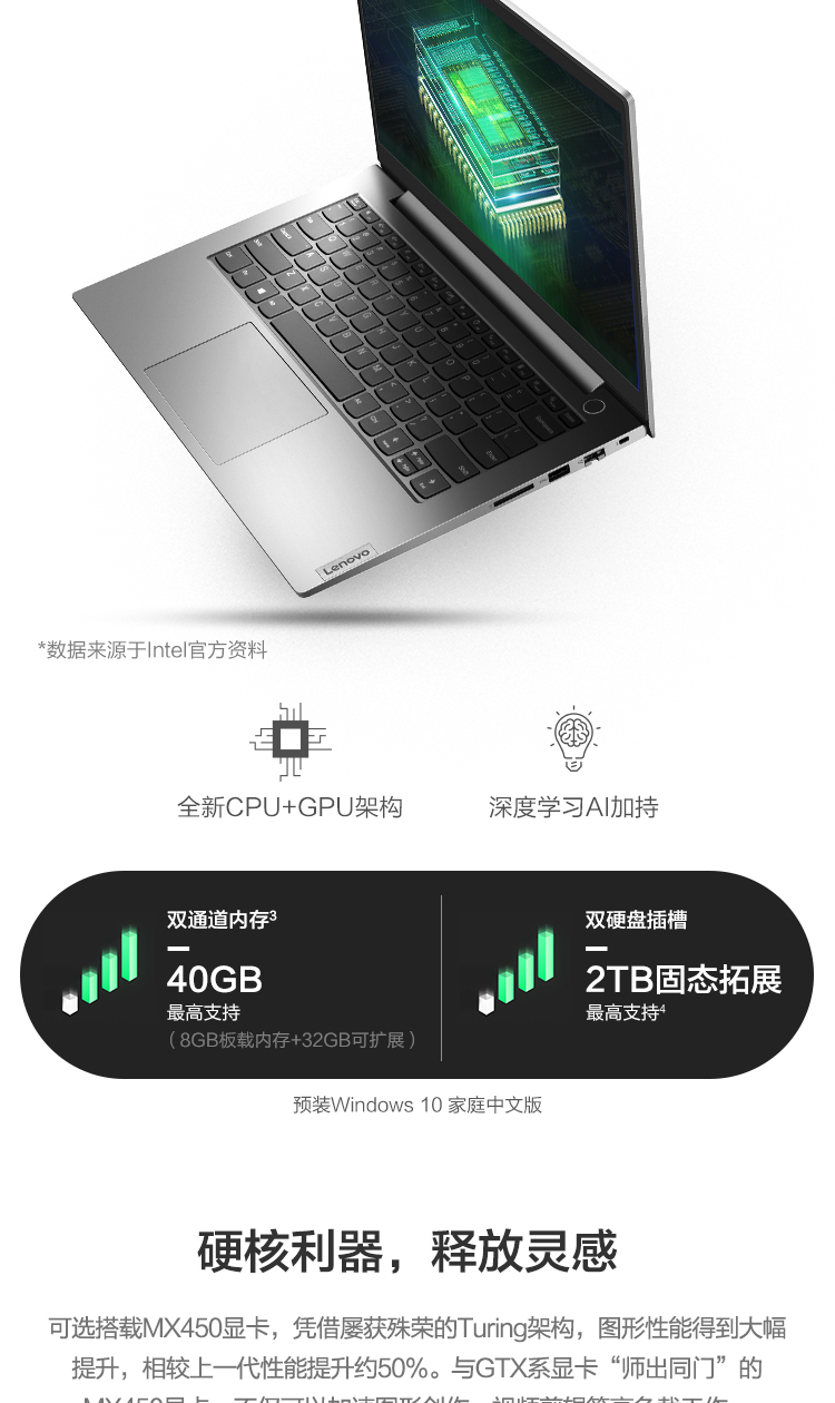 联想ThinkBook 14 2021款 14英寸轻薄笔记本电脑 【08CD】 11代酷睿i7-1165G7 独显 16G 512G 100%sRGB 高色域 标配