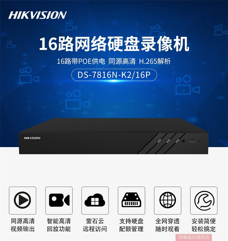 海康威视 DS-7816N-K2/16P 海康威视网络监控硬盘录像机16路带POE 不带硬盘