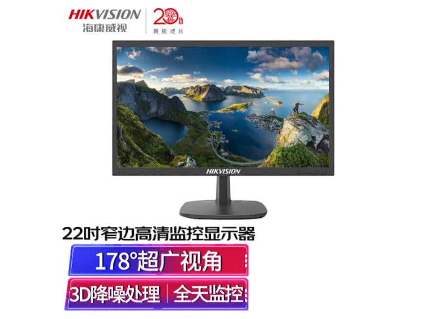 海康威视HIKVISION 22英寸1080P窄边框低功耗显示器D5022FQ-NA多接口全天候监控器台式机电脑显示屏