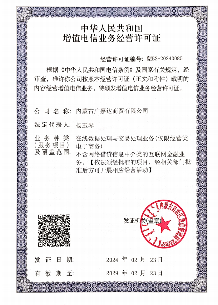 电信增值业务经营许可证